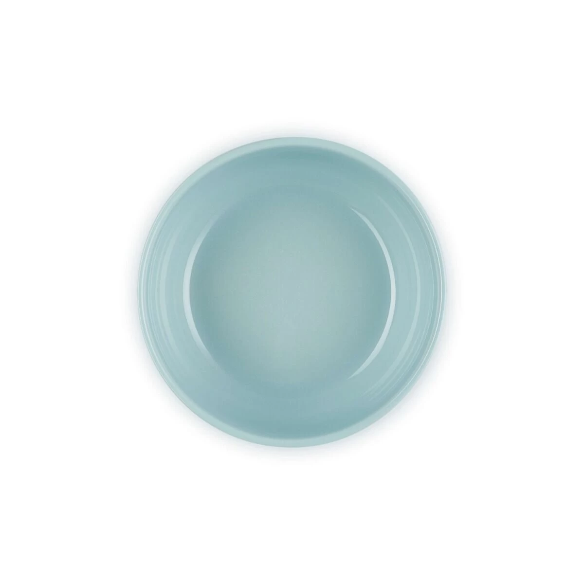 De kom van Le Creuset is gemaakt van geglazuurd aardewerk, uitgevoerd in lichblauw Sea Salt en heeft een glanzende afwerking. De kom heeft een diameter van 16 cm.